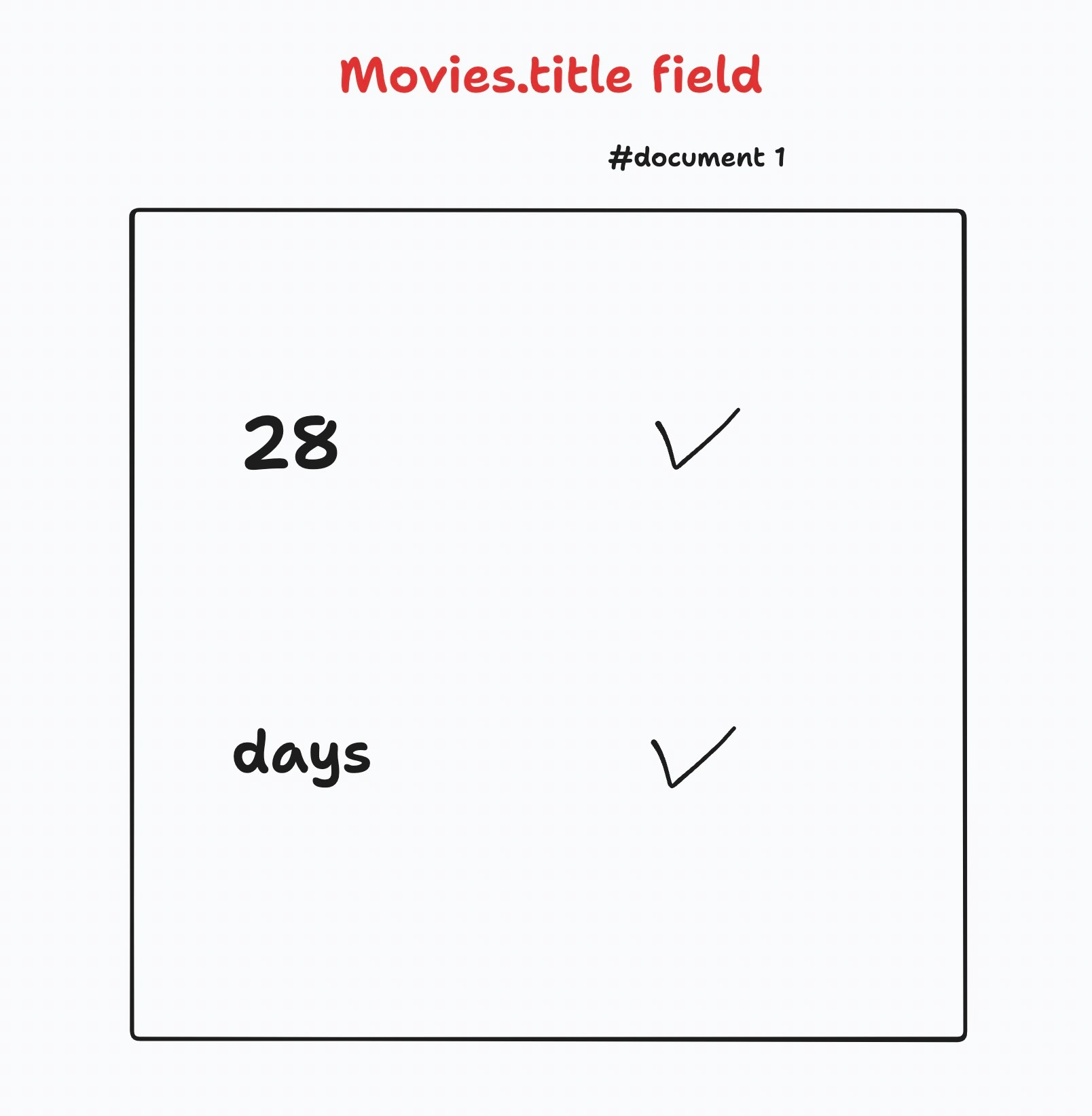 為什麼會這樣呢?回想一下 text 的資料類型是怎麼被 Analyzer 處理和儲存的,下面是 28 Days 轉換成 inverted index 的樣子: