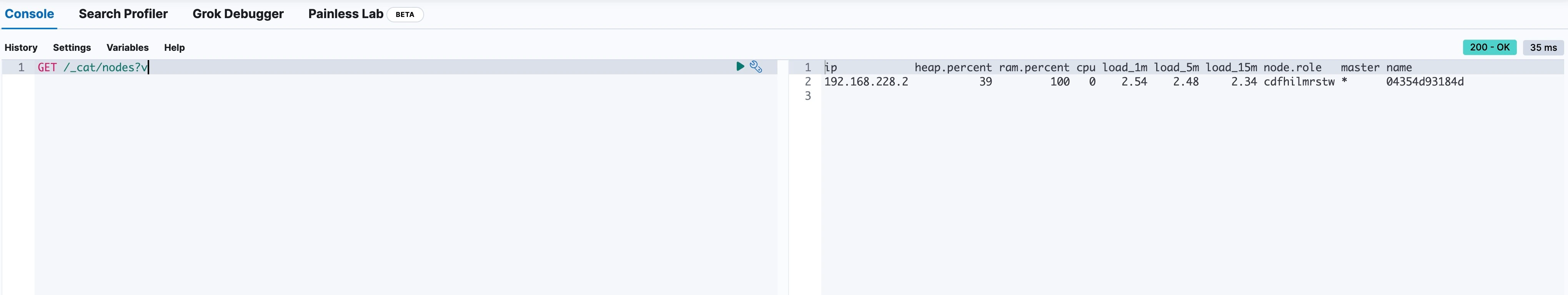 ip             heap.percent ram.percent cpu load_1m load_5m load_15m node.role   master name