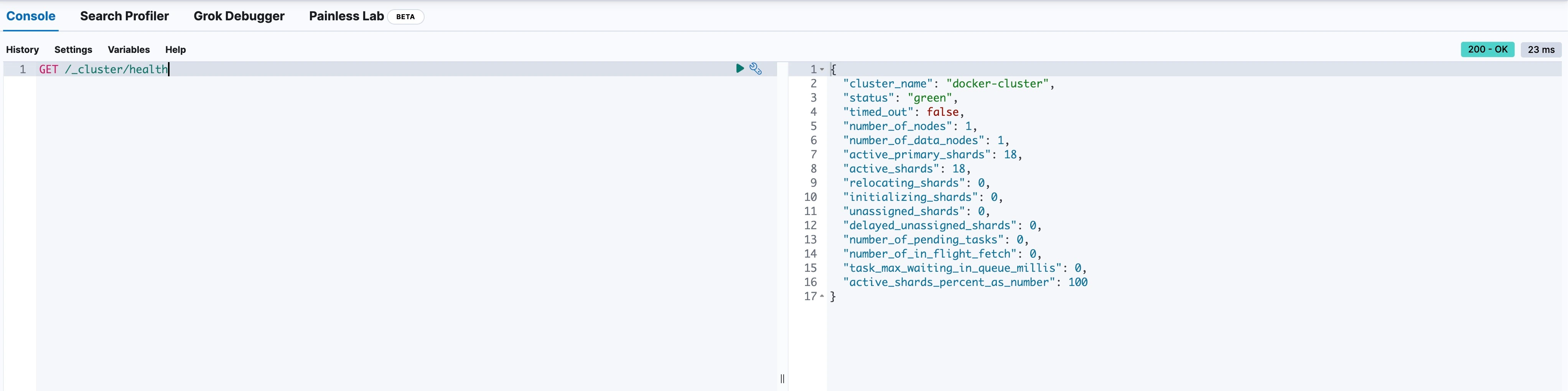 就直接使用 GET /_cluster/health 來獲取整個叢集的健康狀態試試看: