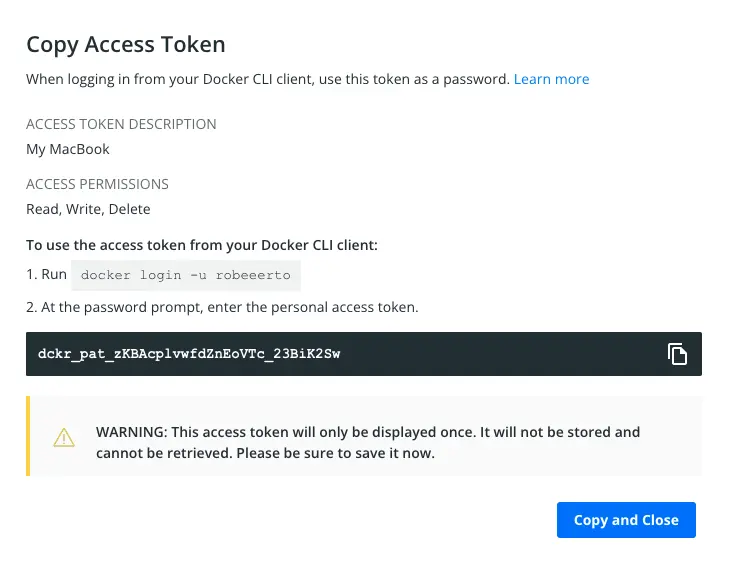 For better security, log in with a limited-privilege personal access token. Learn more at https://docs.docker.com/go/access-tokens/